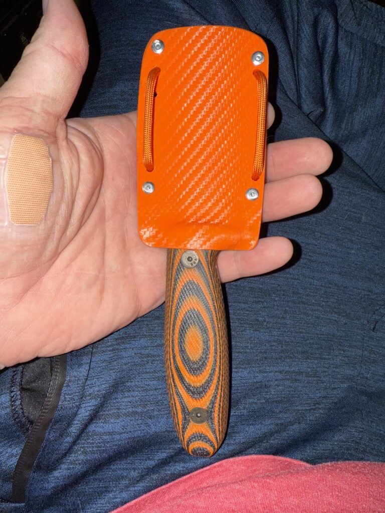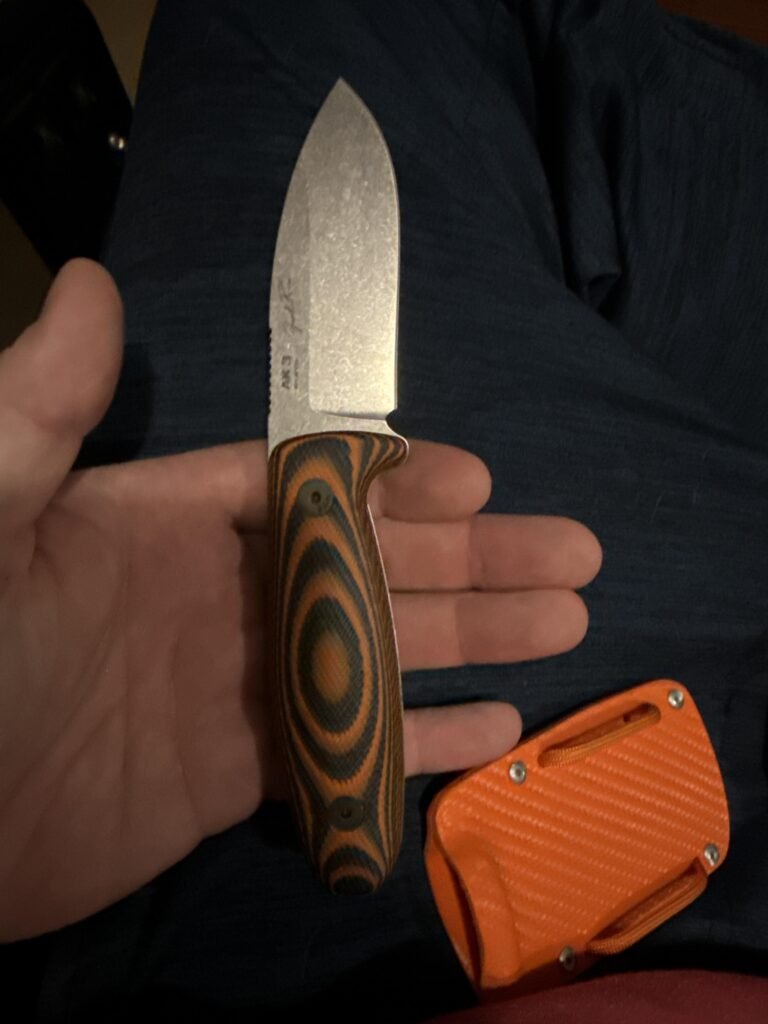 Comfortable, well-sized blade, and beautiful. My main complaints are that top of the spine does not sit completely flush with micarta scales (but does not affect usage/comfort), and the retention screw on the sheath is placed in a way that disallows me from attaching an Ulti Clip on that side (my preferred side).