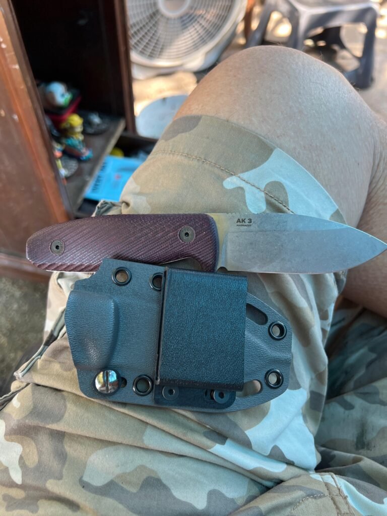 The ak3 in magnacut with g10 scales and kydex sheath is lightweight, comfortable in the hand, shaving sharp, and great for pocket carry. It’s a great little knife and a good deal!